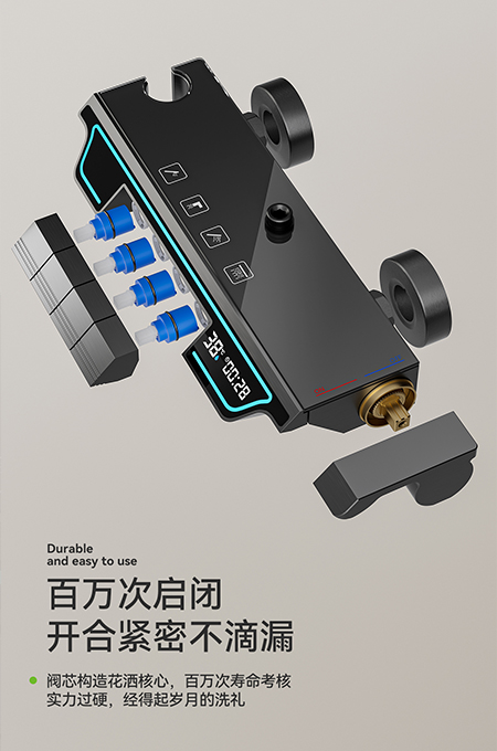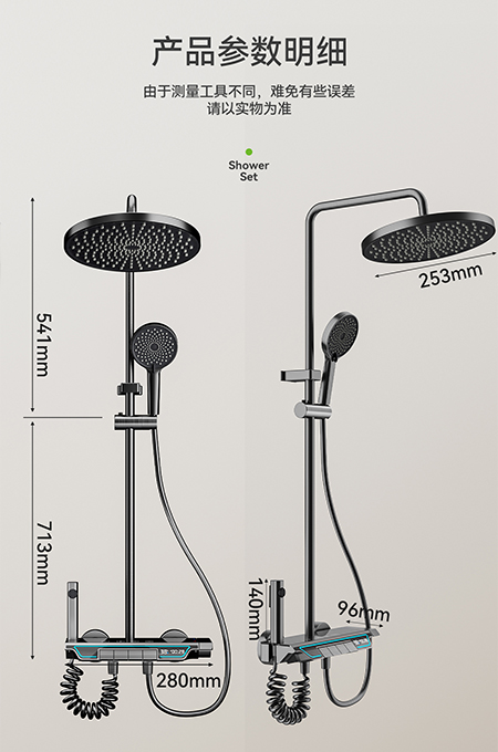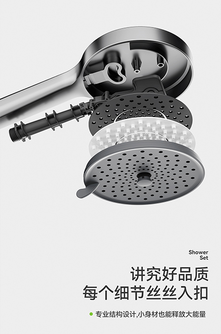 • 59A黃銅內芯,太空鋁殼體,2.0MM太空鋁淋浴管,太空鋁噴槍和太空鋁牆座,滑套。